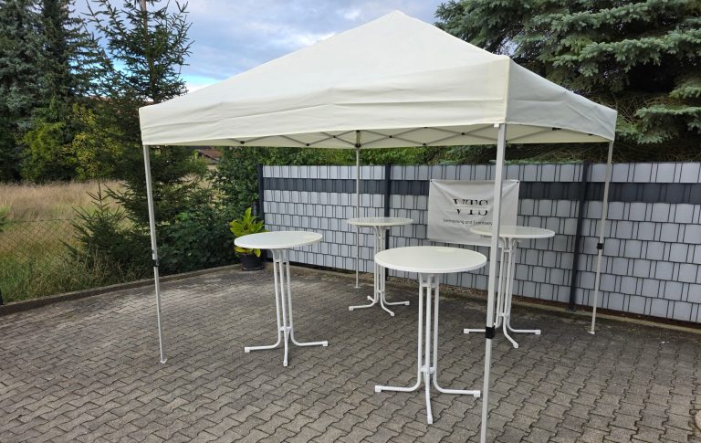 Ob Stehtische, Pavillons, Hussen, Absperrungen oder weiteres Zubehör – ich sorge dafür, dass vor Ort alles bereitsteht, was du brauchst.